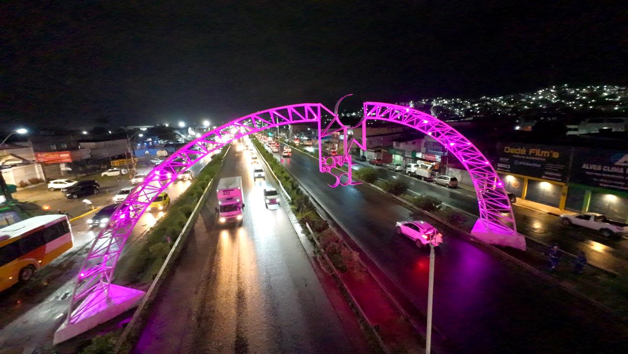 Quem trafegar à noite pela PE-60, no Cabo de Santo Agostinho, vai perceber que o Arco do Portal do Sol ganhou a cor rosa. A iluminação especial faz referência ao Outubro Rosa, campanha mundial de conscientização sobre a importância da prevenção e do diagnóstico precoce do câncer de mama. O arco é um importante símbolo da rodovia que conecta o município às praias do litoral sul do estado.