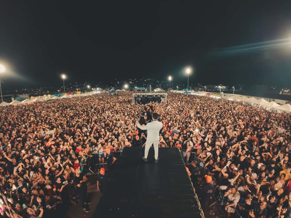E para encerrar, Pablo, O “Rei da Sofrência”, subiu ao palco sob uma recepção calorosa. Uma multidão de admiradores já o aguardava desde cedo, chamando por seu nome, levantando celulares e disputando cada centímetro de espaço. A Praça Nove de Julho estava completamente tomada, sem lugar para quem ainda tentava entrar. Pablo fechou a noite com seus grandes sucessos, provocando suspiros, lágrimas, declarações apaixonadas e pedidos incansáveis por mais uma música.