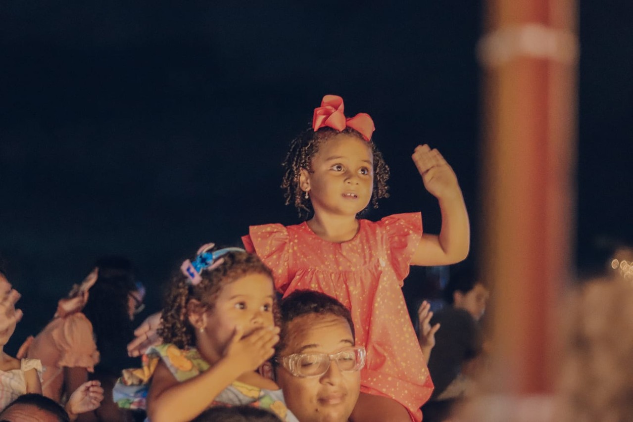 “Eu adorei o Papai Noel! Os fogos! Tá muito lindo”, disse a pequena Ana Liz, de 8 anos.