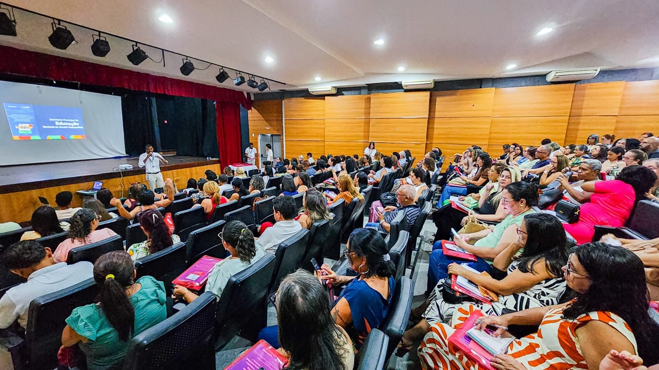 A Prefeitura do Cabo de Santo Agostinho, por meio da Secretaria Municipal de Educação (SME), está realizando o primeiro encontro formativo do ano de 2026 para gestores e coordenadores da Rede Municipal de Ensino. Durante toda a semana (19 a 23/01), mais de 150 profissionais estão participando da atividade no Auditório Padre Antônio Carlos Vander Velden, no bairro de Pontezinha, trabalhando o tema “Liderança, Gestão de Pessoas e Gestão Administrativa com Foco nos resultados”.